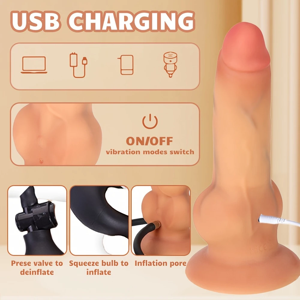 1pc Realistic Inflatable Dildo Anal Vibrator, Soft Liquid Silicone Vibrating Dildo With Adjustable Thickness G Spot Stimulator, 10 Vibration Modes Prostate Massager Anal Adult Sex Toys For Men Women Couples