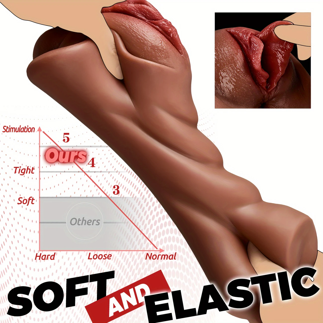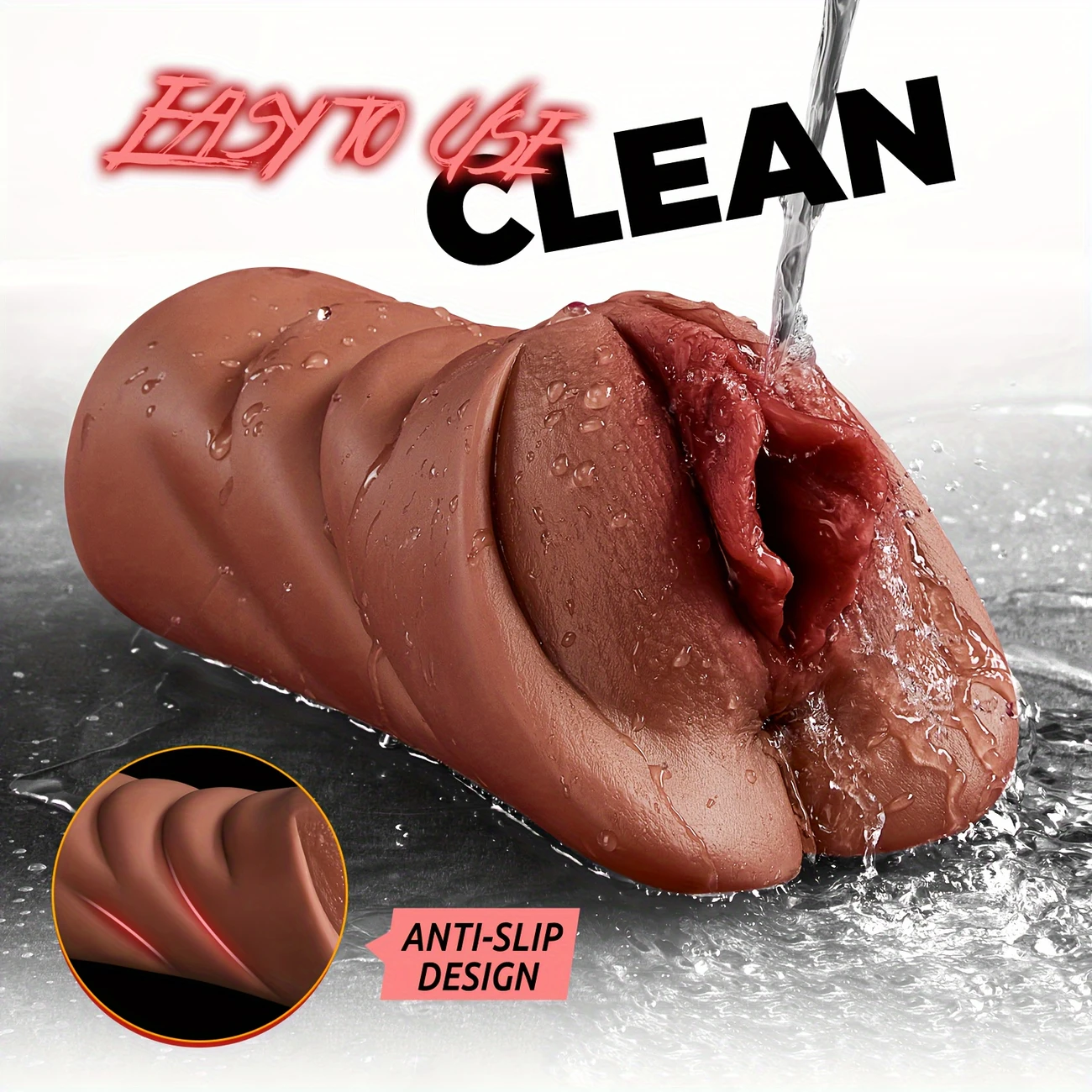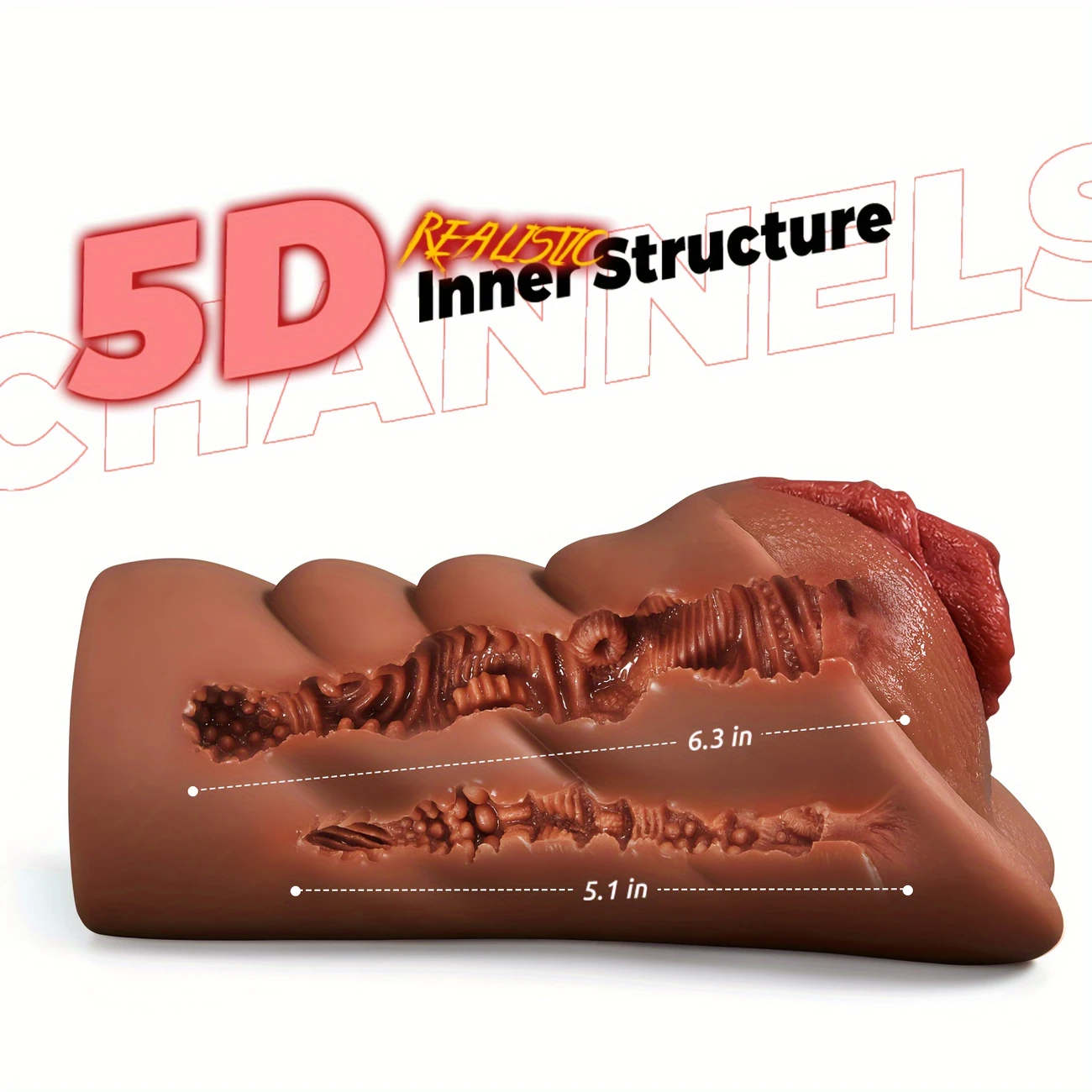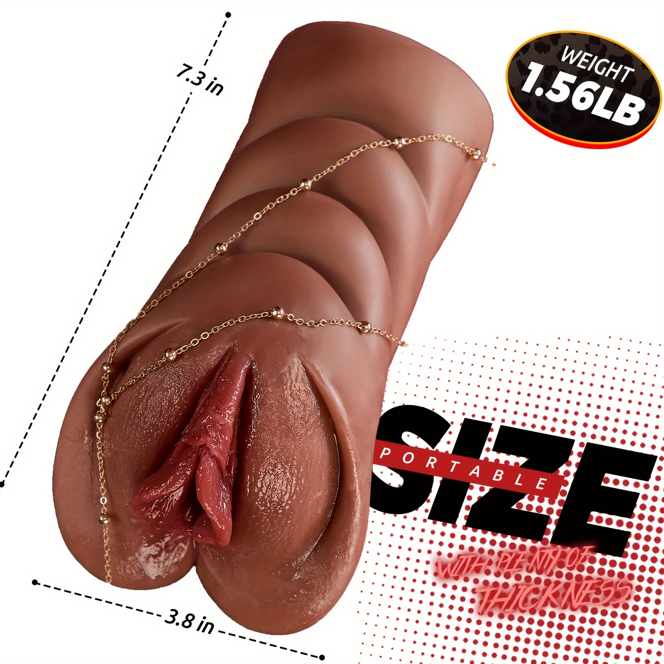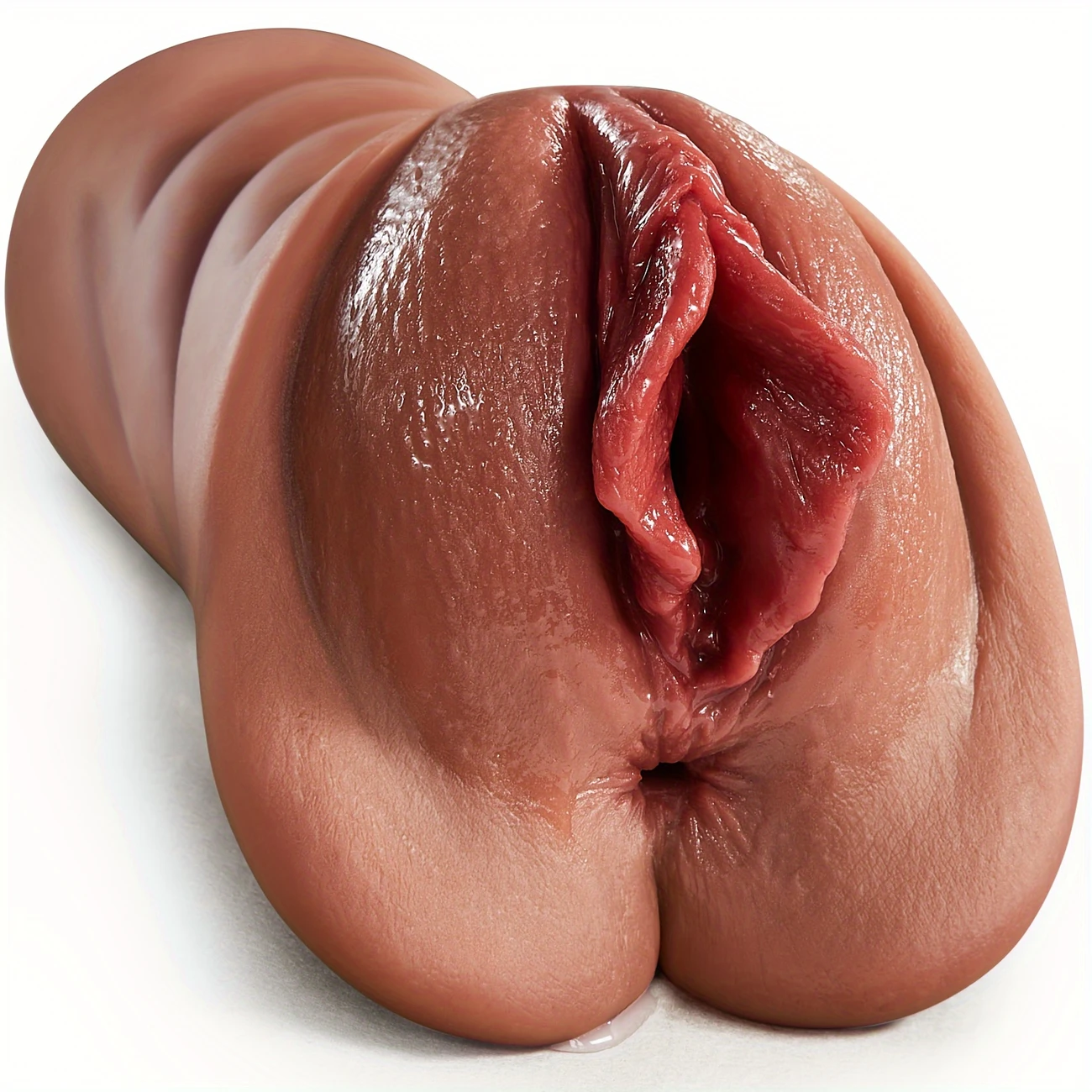 1PC Realistic Pocket Pussy Male Masturbators, Thick Labia Brown Male Masturbator With 5D Stimulation Deep Vagina And Tight Anus, Lifelike Blowjob Male Stroker Adult Sex Toys For Men Masturbation
